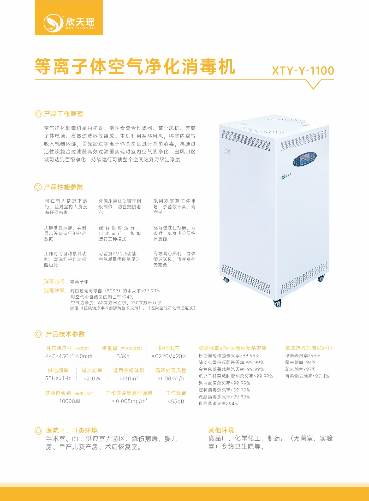 欣天瑤牌XTY-Y-1100型等離子體空氣凈化消毒機